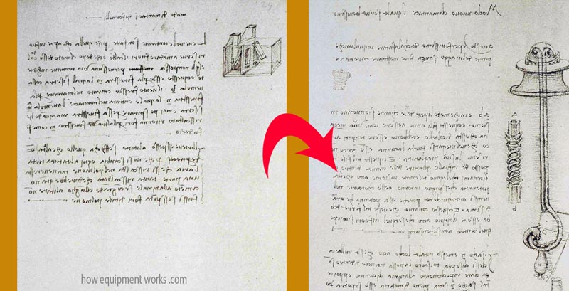 However, Leonardo Da Vinci, who lived about 500 years ago, was much more than an artist. He was also a great thinker and fortunately for us, he noted many of his thoughts on sheets of paper. Even though they are over 500 years old, many thousands of these sheets of paper have survived in good condition. Shown below is one such sheet.