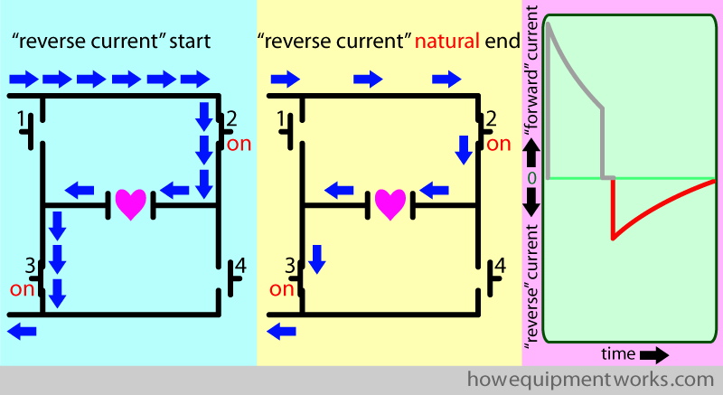 - The “reverse current” is then stopped (truncated) by switching all switches OFF.